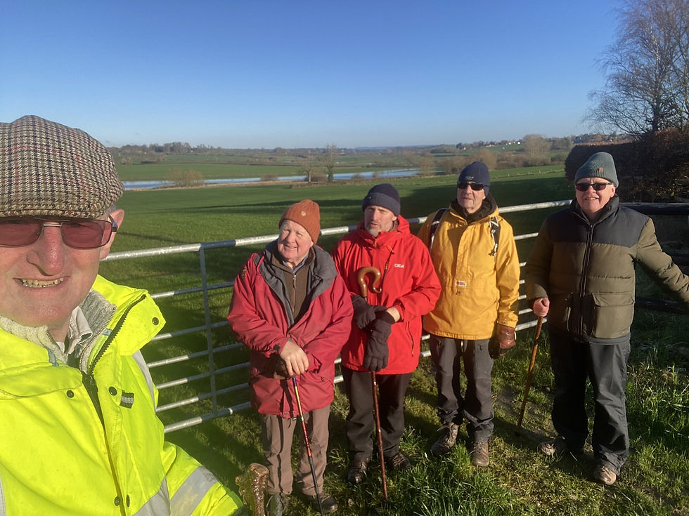 And so, twenty minutes later than planned we set off out of the yard and onto an anti clockwise loop which would take us parallel to the river and then through the village of Marnhull, called Marlot in Thomas Hardy’s Tess of the D’Urbervilles. We walked just a short stretch north along the B3092 before turning left onto Great Down Lane. As we continued along we started to see the flooded fields along the line of the river. Stopping at an open gateway we had a tremendous view or the water and right up the vale to the properties of Wincanton just visible on the far ridge. As we stood there a red kite was flying around just to our left but disappeared before I could get a good photo of it. To the right of our view we could just make out the road along which Rich & Phil had travelled earlier although trying to identify the bridge and point at which they had turned around was more difficult.